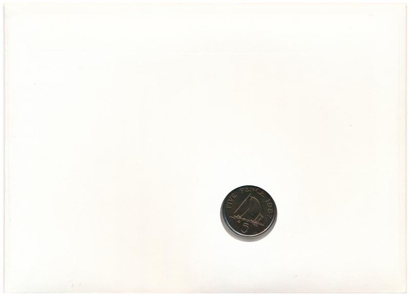 Guernsey 1987. 5 Pence in envelope with stamp and cancellation, with German description C:UNC