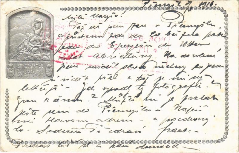 1916 Isonzo-Armee 1915 feliratú jelvény képe tábori postai levelezőlap... https://www.darabanth.com/de/398-Fernauktion/398.0/Ansichtskarten/Militaria~1000054/1916-Isonzo-Armee-1915-feliratu-jelveny-kepe-tabori-postai-levelezolapon-WWI-Austro-Hungarian~II2427102