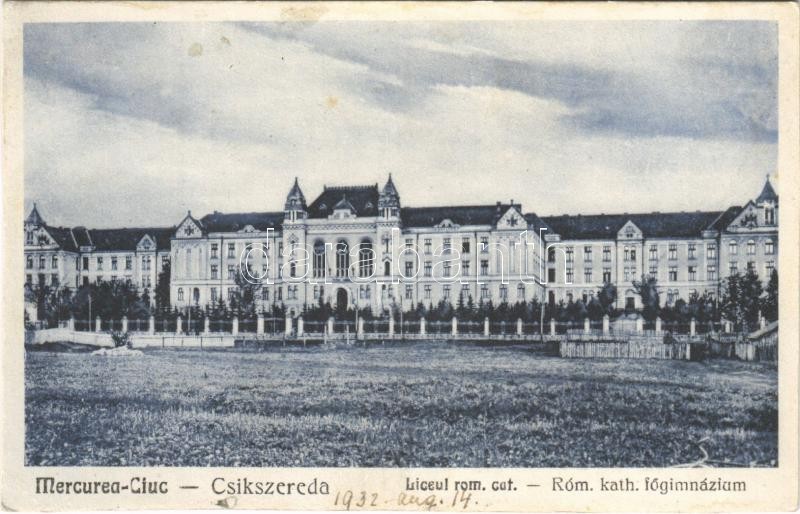 1932 Csíkszereda, Miercurea Ciuc; Liceul rom. cat. / Római katolikus f... https://www.darabanth.com/de/398-Fernauktion/398.0/Ansichtskarten/Siebenburgen~1000005/1932-Csikszereda-Miercurea-Ciuc-Liceul-rom-cat-Romai-katolikus-fogimnazium-Catholic-gram~II2424937