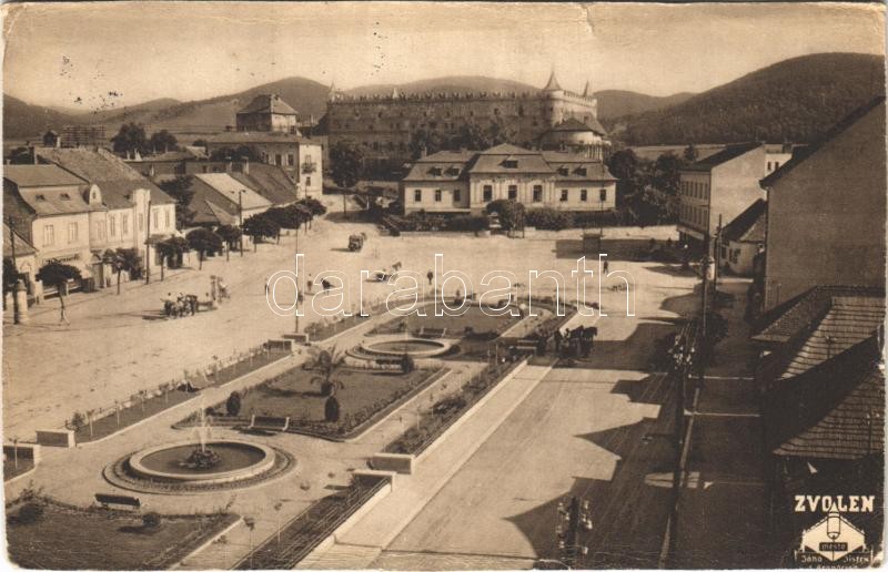 1939 Zólyom, Zvolen; vár, fő tér / Zvolensky zámok / castle, main squa... https://www.darabanth.com/de/398-Fernauktion/398.0/Ansichtskarten/Slowakei~1000006/1939-Zolyom-Zvolen-var-fo-ter-Zvolensky-zamok-castle-main-square-vagott-cut~II2425935