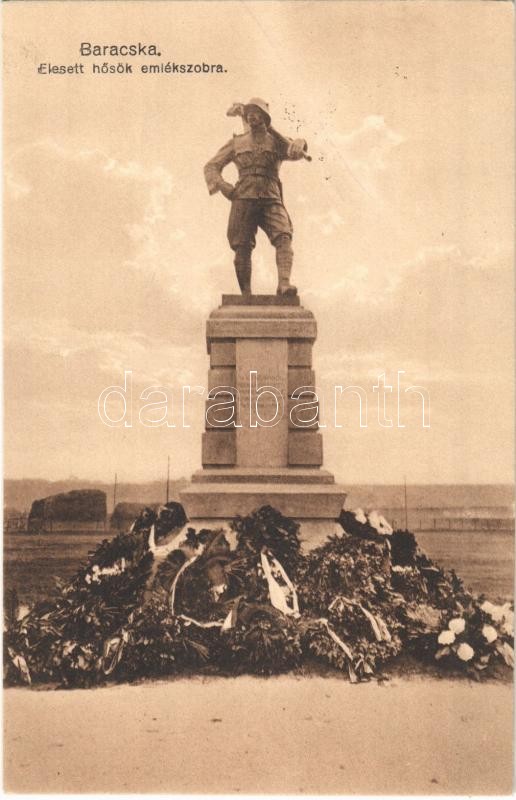 1931 Baracska, Elesett hősök emlékszobra https://www.darabanth.com/de/398-Fernauktion/398.0/Ansichtskarten/Ungarn~1000004/1931-Baracska-Elesett-hosok-emlekszobra~II2428804