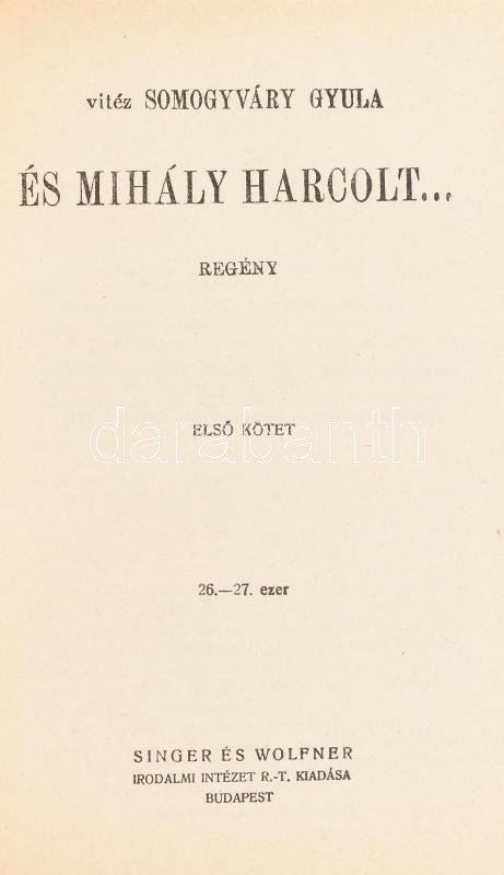 vitéz Somogyváry Gyula: És Mihály harcolt... Bp., 1942, Singer és Wolf... https://www.darabanth.com/de/398-Fernauktion/398.0/Bucher/Bucher-Andere-kuriositaten~1500020/vitez-Somogyvary-Gyula-Es-Mihaly-harcolt-Bp-1942-Singer-es-Wolfner-Kiadoi-felvaszon-~II2424698