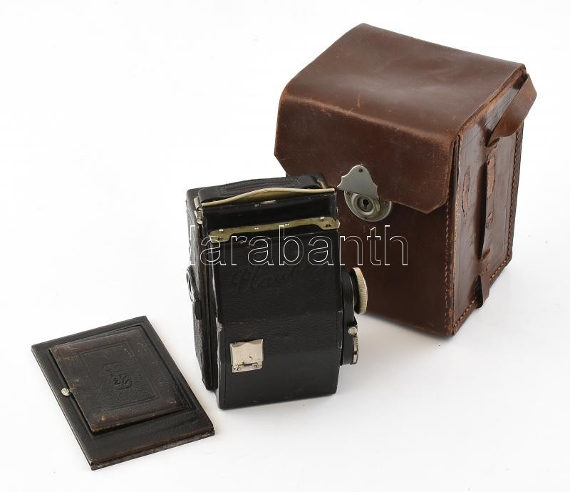 Beschreibung: Zeiss Ikon kamera Zeiss Tessar 1:4,5 f: 10,5 mm objektívvel, hozzá Plaubel roll filmes adapter és fém kazetta. Bőr tokban, működő állapotban