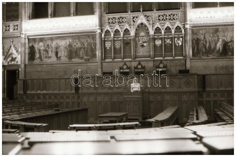 1989 Staller Ilona, ismertebb nevén Cicciolina (1951) magyar modell és olasz politikus látogatása a budapesti parlamentbe, 3 db vintage NEGATÍV, 24x36 mm