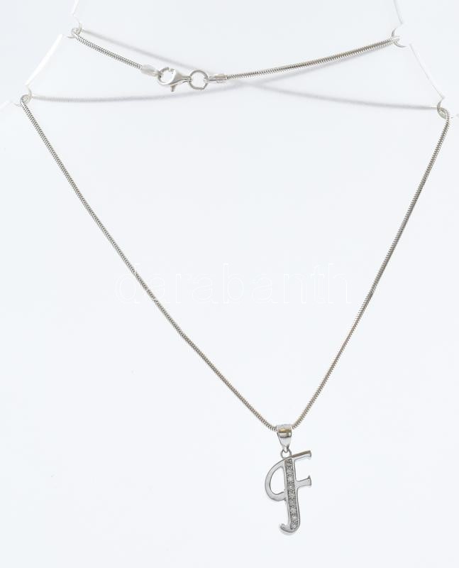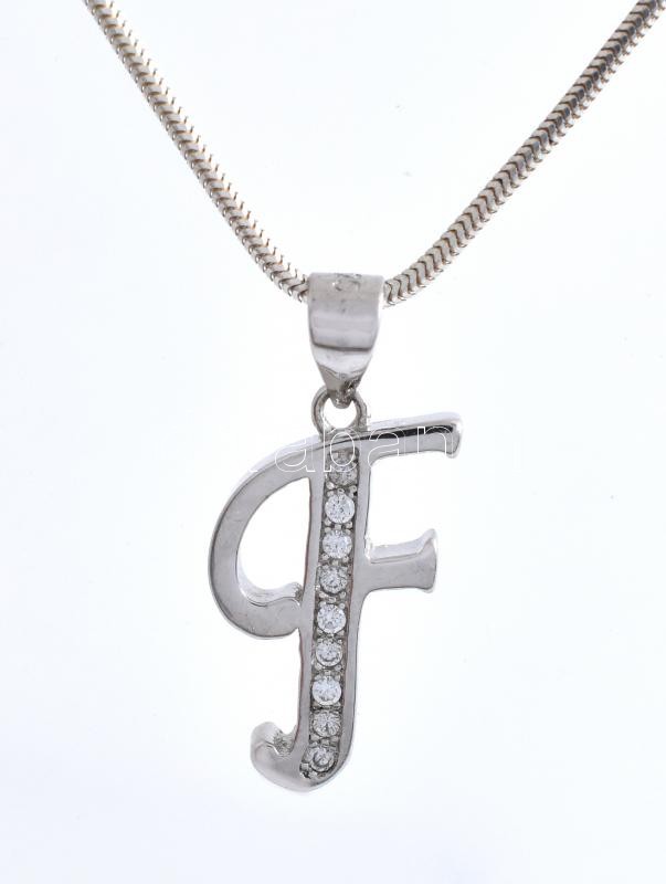 Beschreibung: Ezüst(Ag) kígyó nyaklánc, köves "F" függővel, jelzett, h: 45 cm, 2,3×1,2 cm, bruttó: 5 g