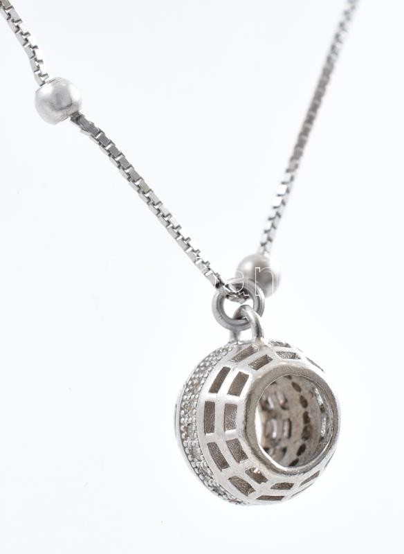 Beschreibung: Ezüst(Ag) venezianer bokalánc, "hordós" függővel, jelzett, h: 22,5-25 cm, bruttó: 3,7 g