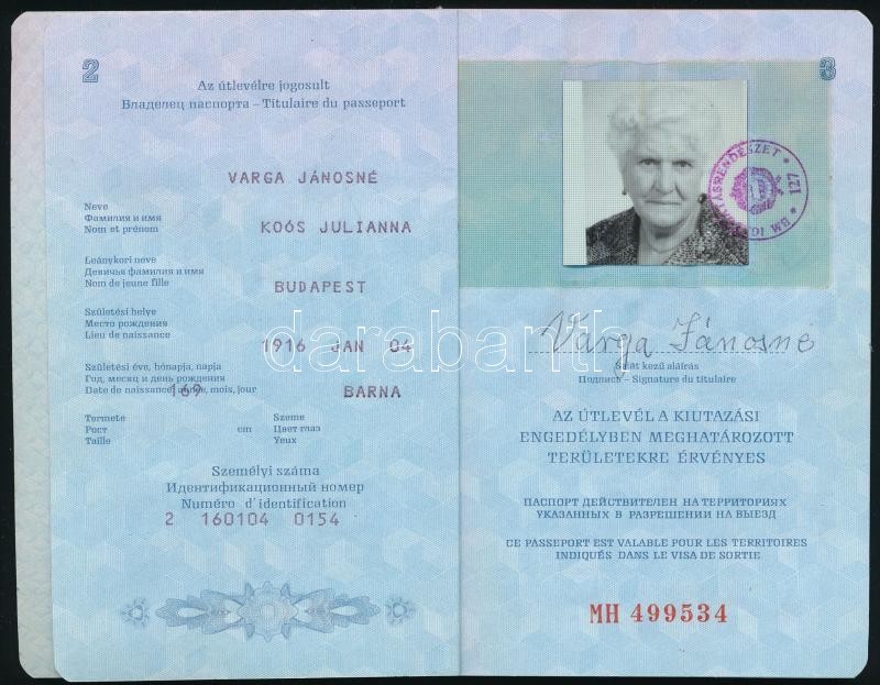 1989 Magyar Népköztársaság által kiállított fényképes útlevél / Hungar... https://www.darabanth.com/de/398-Fernauktion/398.0/Kunst-Dokumente-andere-Sammelgebiete/Dokument~500019/1989-Magyar-Nepkoztarsasag-altal-kiallitott-fenykepes-utlevel-Hungarian-passport~II2425532