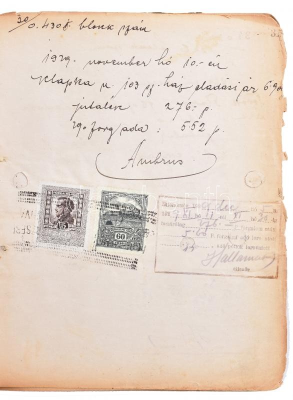 cca. 1927-1949 Forgalmiadó leróvási könyv - Ambrus Márton tulajdona, o... https://www.darabanth.com/de/398-Fernauktion/398.0/Kunst-Dokumente-andere-Sammelgebiete/Dokument~500019/cca-1927-1949-Forgalmiado-lerovasi-konyv-Ambrus-Marton-tulajdona-okmanybelyegekkel-es-el~II2432231