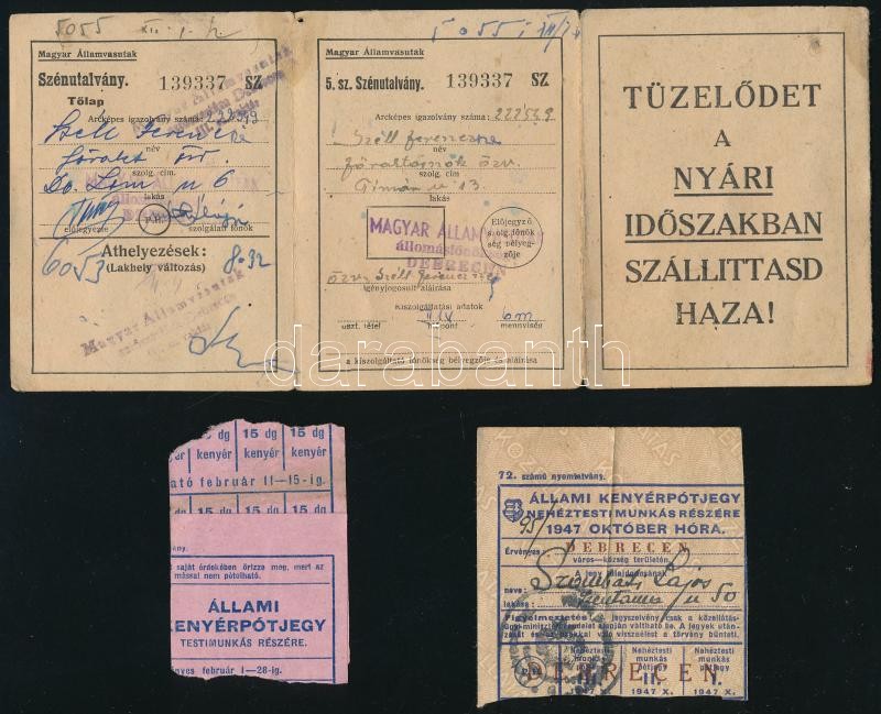 cca 1947 Tüzelőanyag utalvány, állami kenyérpótjegy https://www.darabanth.com/de/398-Fernauktion/398.0/Kunst-Dokumente-andere-Sammelgebiete/Dokument~500019/cca-1947-Tuzeloanyag-utalvany-allami-kenyerpotjegy~II2429296