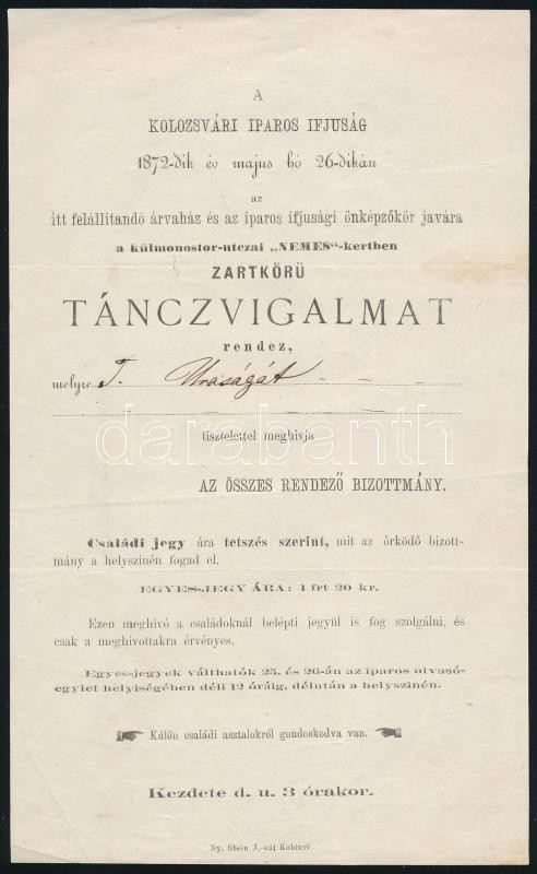 1872-1926 Meghívó táncvigalomra és zászlószentelésre, 2 db https://www.darabanth.com/de/398-Fernauktion/398.0/Kunst-Dokumente-andere-Sammelgebiete/Drucksachen~500032/1872-1926-Meghivo-tancvigalomra-es-zaszloszentelesre-2-db~II2425698