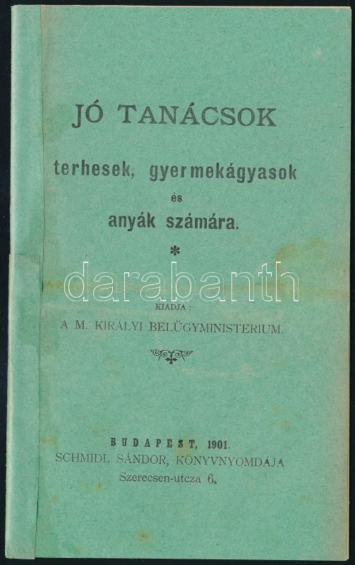 1901 Jó tanácsok, terhesek, gyermekágyasok és anyák számára. Bp., 1901... https://www.darabanth.com/de/398-Fernauktion/398.0/Kunst-Dokumente-andere-Sammelgebiete/Drucksachen~500032/1901-Jo-tanacsok-terhesek-gyermekagyasok-es-anyak-szamara-Bp-1901-Schmidl-24p~II2428022