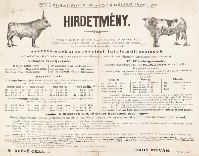1902 Pest-Pilis-Solt-Kiskun vármegye gazdasági egyesületének hirdetmén... https://www.darabanth.com/de/398-Fernauktion/398.0/Kunst-Dokumente-andere-Sammelgebiete/Drucksachen~500032/1902-Pest-Pilis-Solt-Kiskun-varmegye-gazdasagi-egyesuletenek-hirdetmenye-szarvasmarha-tenyeszt~II2428019