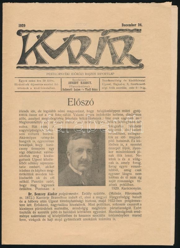1929 Kurír, Pest környéki időközi rajzos hetilap, december 24-iki szám https://www.darabanth.com/de/398-Fernauktion/398.0/Kunst-Dokumente-andere-Sammelgebiete/Drucksachen~500032/1929-Kurir-Pest-kornyeki-idokozi-rajzos-hetilap-december-24-iki-szam~II2428202