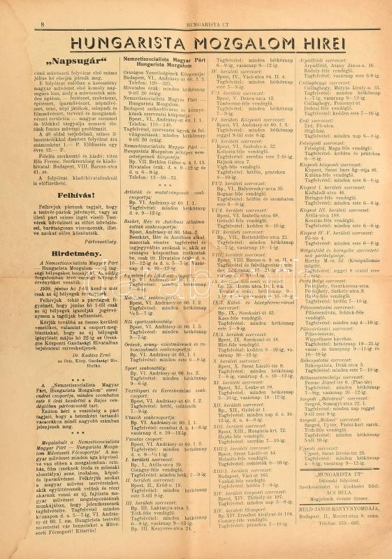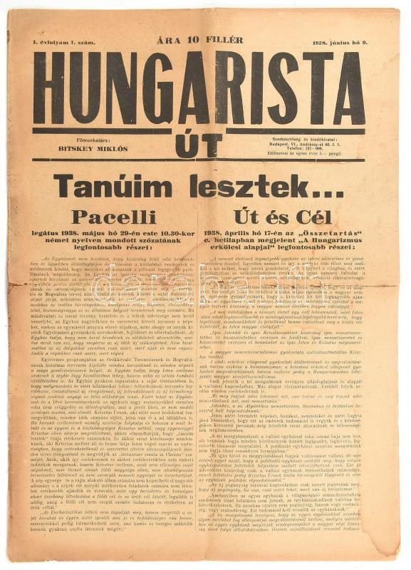 1938 Hungarista út. I. évf. 1. szám. 1938. jún. 9. Főmunkatárs: Bitske... https://www.darabanth.com/de/398-Fernauktion/398.0/Kunst-Dokumente-andere-Sammelgebiete/Drucksachen~500032/1938-Hungarista-ut-I-evf-1-szam-1938-jun-9-Fomunkatars-Bitskey-Miklos-Szerk-Acs-~II2427184