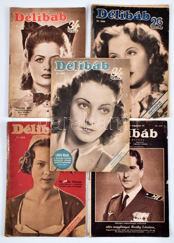 1943 Délibáb színházi hetilap 5 db száma: 24., 34., 37., 38., és 43. S... https://www.darabanth.com/de/398-Fernauktion/398.0/Kunst-Dokumente-andere-Sammelgebiete/Drucksachen~500032/1943-Delibab-szinhazi-hetilap-5-db-szama-24-34-37-38-es-43-Serult-papirboritova~II2427930
