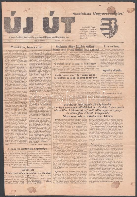 Beschreibung: 1956. november 10. Új Út (Magyar Szocialista Munkáspárt Veszprém megyei ideiglenes Intéző Bizottságának lapja) I. évfolyamának 2. száma