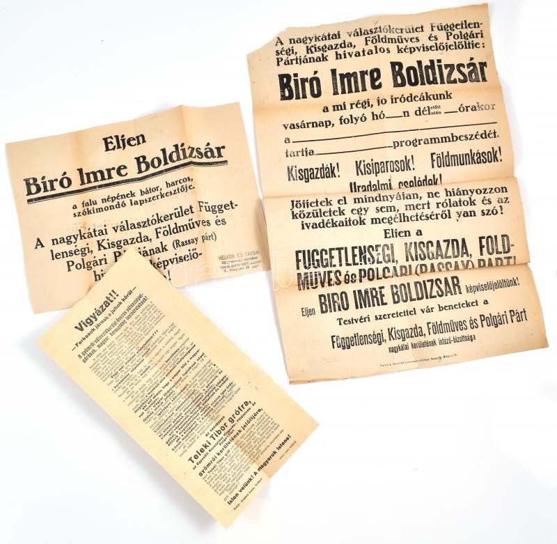 Beschreibung: cca 1920-30 Független Kisgazdapárt választási plakátok és reklám nyomtatványok 32x47 cm