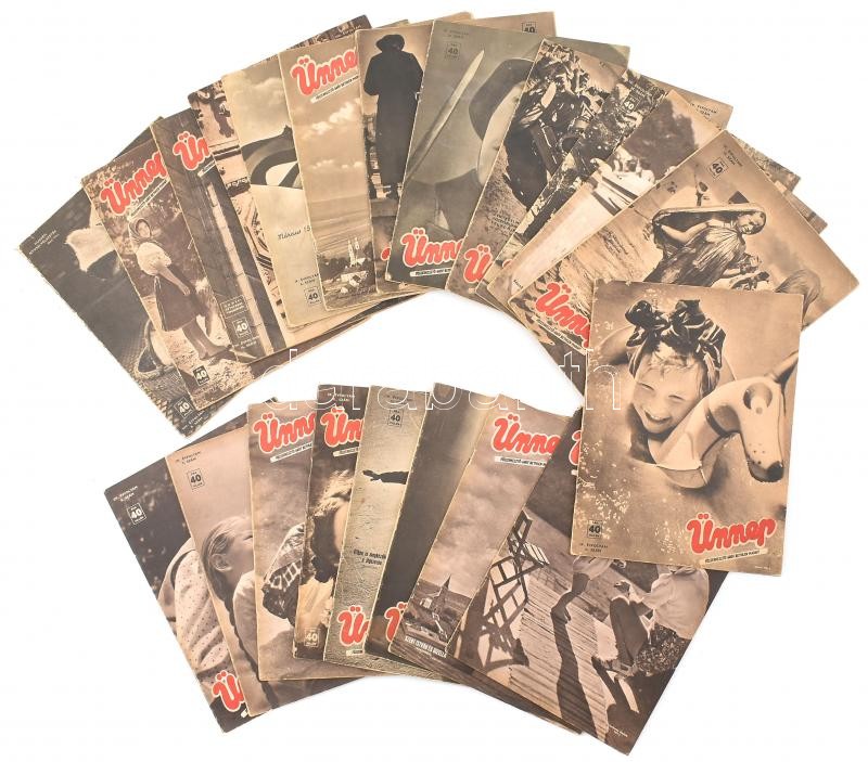 Beschreibung: cca 1942-1943 Ünnep c. folyóirat 21 száma, főszerkesztő: gróf Behtlen Margit, több II. világháborús képpel és írással, részben kissé foltos borítóval