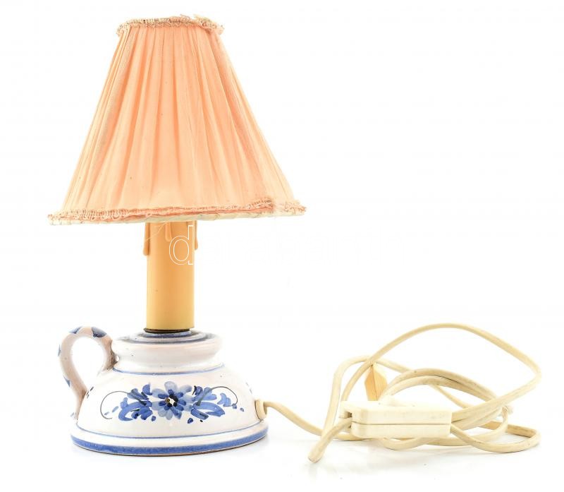 Beschreibung: Elektromos kerámia lámpa, kézzel festett, címkével jelzett, szövet búrával, égővel, működik, m: 25 cm