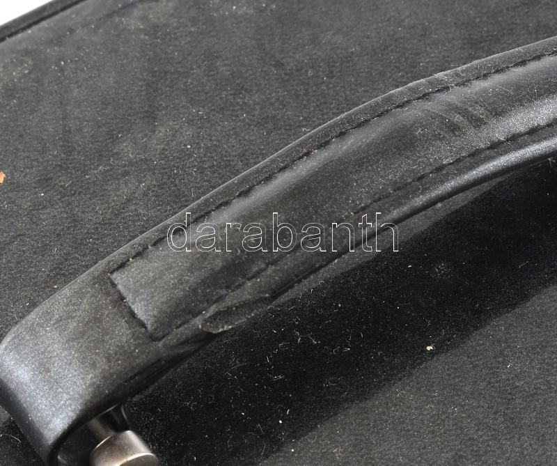 Beschreibung: Fekete lakk ékszertartó táska, 3 fiókkal, tükörrel, kulccsal, benne bizsukkal, fülén kis sérüléssel, 24x15x15,5 cm