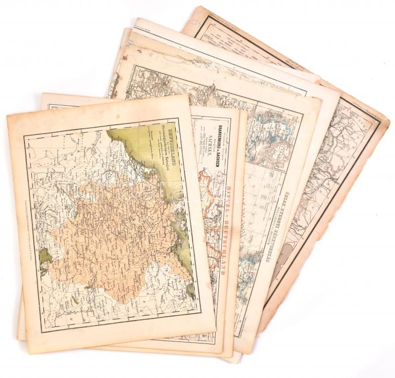 Beschreibung: 10 db régi térkép (Deutschland zur Zeit des Dreissigjaerigen Krieges, Brandenburg u. Sachsen, Észak-Nyugati Németország, Süd-Deutschland, stb.)