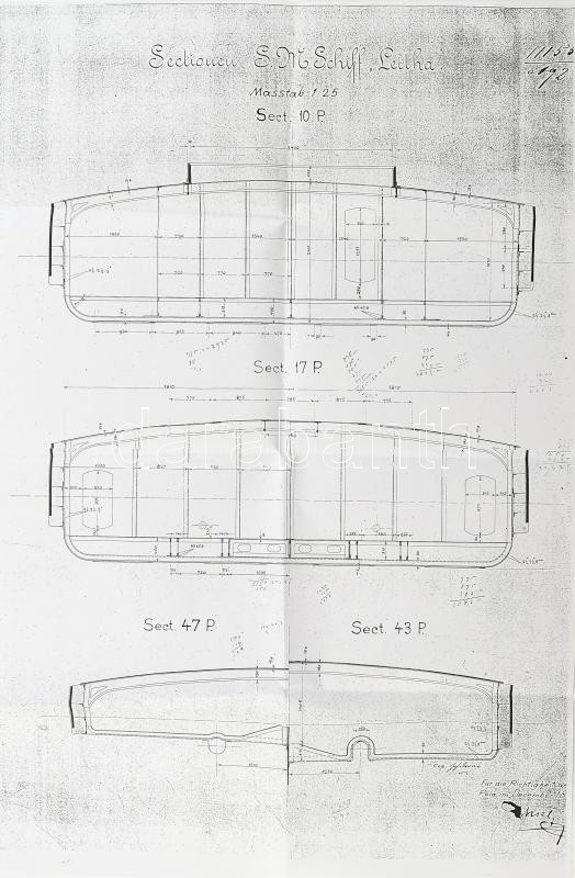 S.M.S. Leitha monitor tervrajz másolat, hajtogatva, 39x59 cm papíron https://www.darabanth.com/de/398-Fernauktion/398.0/Kunst-Dokumente-andere-Sammelgebiete/Militaria~500029/SMS-Leitha-monitor-tervrajz-masolat-hajtogatva-39x59-cm-papiron~II2427388