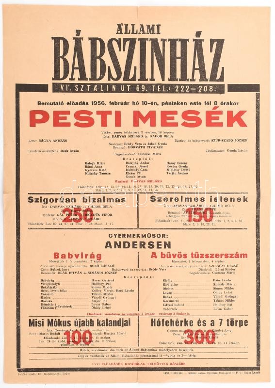 1956 Állami Bábszínház - Pesti mesék plakát, hajtott, 42×29,5 cm https://www.darabanth.com/de/398-Fernauktion/398.0/Kunst-Dokumente-andere-Sammelgebiete/Plakat~500033/1956-Allami-Babszinhaz-Pesti-mesek-plakat-hajtott-42C39729-5-cm~II2425655