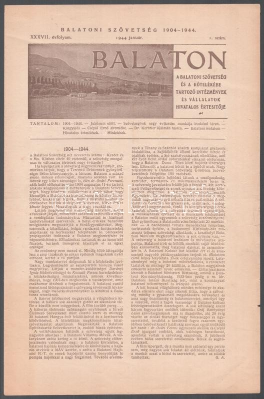 1917, 1944 Balaton, A Balatoni Szövetség hivatalos értesítője.X. évf.1... https://www.darabanth.com/de/398-Fernauktion/398.0/Kunst-Dokumente-andere-Sammelgebiete/Schiffe-Plattensee~500028/1917-1944-Balaton-A-Balatoni-Szovetseg-hivatalos-ertesitojeX-evf10-12-es-XVIII-evf-1-s~II2425533