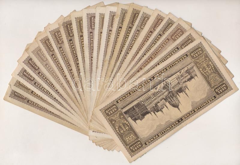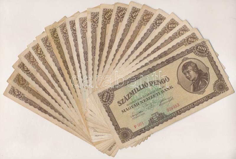 Adamo P27 https://www.darabanth.com/de/398-Fernauktion/398.0/Numismatik/Ungarische-Banknoten~2000007/1945-100000000P-20x-TIII-III--Adamo-P27~II2428999