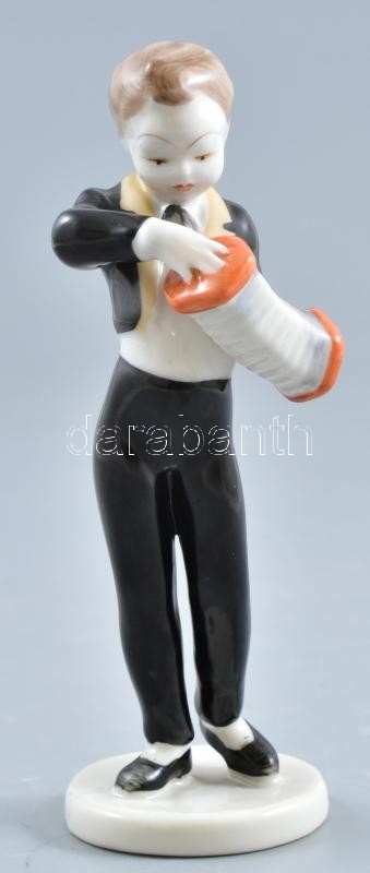 Beschreibung: Hollóházi porcelán harmonikás kisfiú, kézzel festett, jelzett, hibátlan , m: 14,5 cm