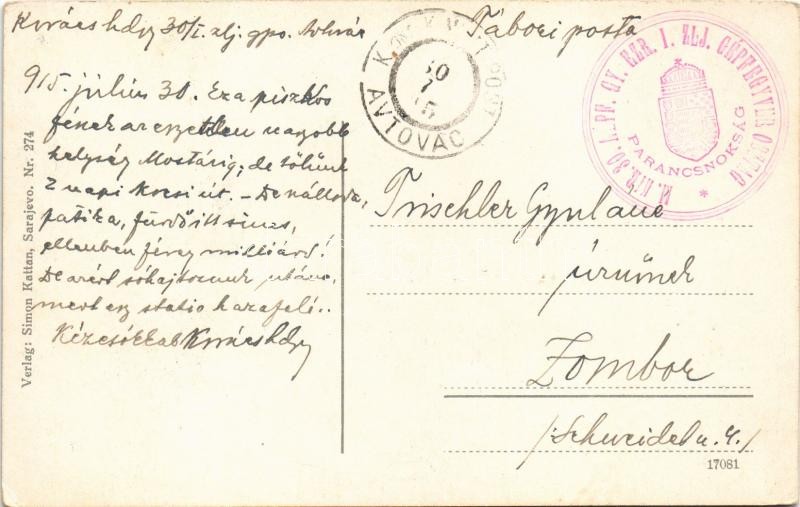 Beschreibung: 1915 Nevesinje, general view + "M. kir. 30. népf. gyalogezred I. zlj. gépfegyveres osztag parancsnokság" (EK)