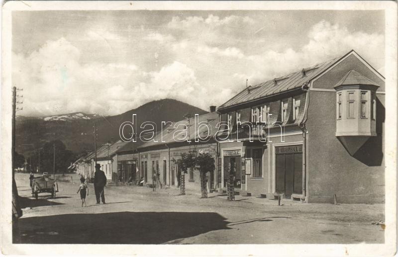 1941 Kőrösmező, Yasinia, Yasinya, Jaszinya, Jassinja, Jasina; Námesti v pozadi Bliznice / tér, Abraham Knoll, S. Galac üzlete, cukrászda / square, shops, confectionery (fl)