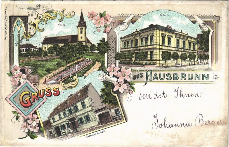 1906 Hausbrunn, Schule, Kirche, Gasthaus Ribisch / school, church, res... https://www.darabanth.com/de/399-Fernauktion/399.0/Ansichtskarten/Osterreich~1000017/1906-Hausbrunn-Schule-Kirche-Gasthaus-Ribisch-school-church-restaurant-F-Pateisky-phot-Art~II2444285