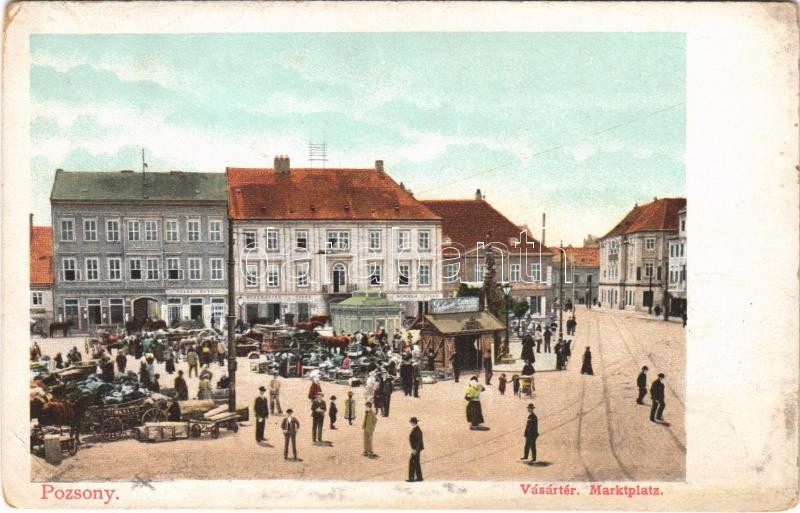 Pozsony, Pressburg, Bratislava; Vásártér, üzletek / Marktplatz / marke... https://www.darabanth.com/de/399-Fernauktion/399.0/Ansichtskarten/Slowakei~1000012/Pozsony-Pressburg-Bratislava-Vasarter-uzletek-Marktplatz-market-shops-EK~II2442942