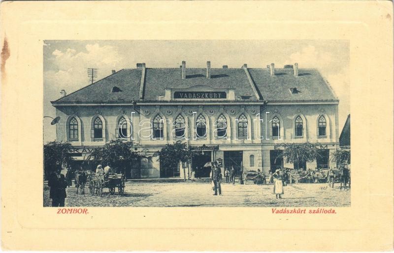 1911 Zombor, Sombor; Vadászkürt szálloda, lovaskocsik / hotel, horse c... https://www.darabanth.com/de/399-Fernauktion/399.0/Ansichtskarten/Vojvodina~1000009/1911-Zombor-Sombor-Vadaszkurt-szalloda-lovaskocsik-hotel-horse-carts-WL-Bp-3741-9118~II2438088