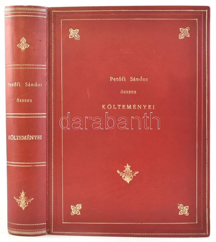 Petőfi Sándor összes költeményei. Hazai művészek rajzaival díszített képes kiadás. Bp., 1879. Mehner Vilmos,(Franklin-ny.), 805+7 p. Gazdag szövegközti képanyaggal illusztrált. Átkötött modern aranyozott műbőr-kötés, benne restaurált lapokkal, egy-két lapszélen szöveget nem érintő hiánnyal, néhány foltos lappal, pár lapon bejegyzésekkel, hiányzó címképpel.