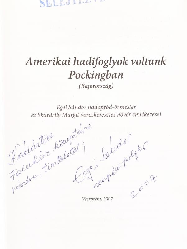 Egei Sándor: Amerikai hadifoglyok voltunk Pockingban (Bajorország). Eg... https://www.darabanth.com/de/399-Fernauktion/399.0/Bucher/Bucher-Militaria~1500005/Egei-Sandor-Amerikai-hadifoglyok-voltunk-Pockingban-Bajororszag-Egei-Sandor-1922-2010-II-v~II2441238