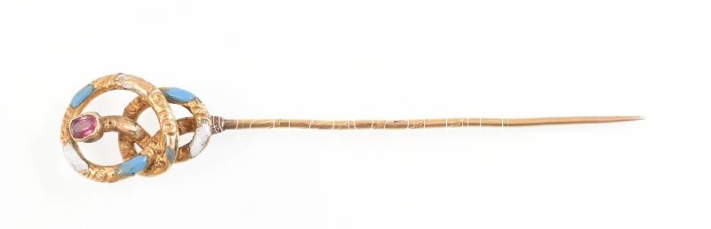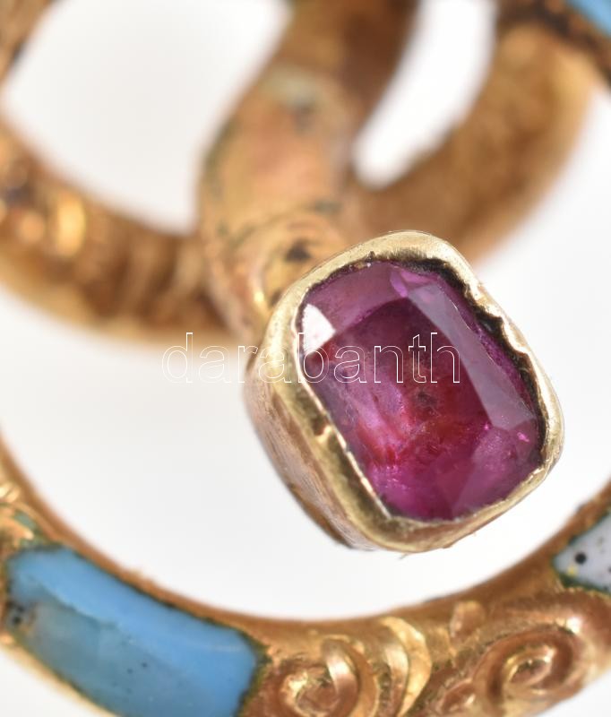Beschreibung: 18K arany (Au) bross zománcozott díszítéssel, kővel 3,2 g 74 mm (jelzés nélkül)