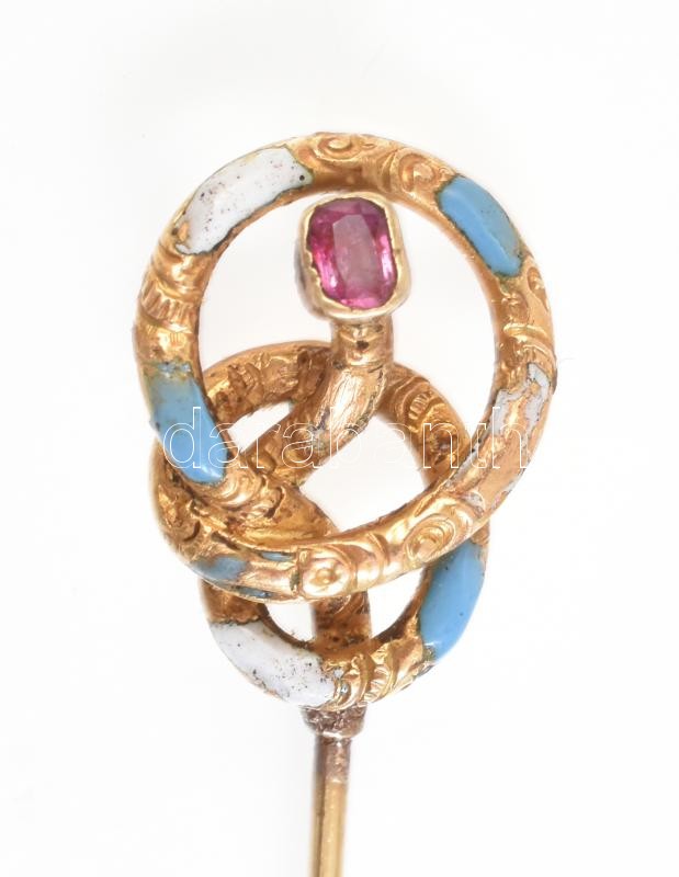 18K arany (Au) bross zománcozott díszítéssel, kővel 3,2 g 74 mm (jelzé... https://www.darabanth.com/de/399-Fernauktion/399.0/Juwelen/Juwelen~1500020/18K-arany-Au-bross-zomancozott-diszitessel-kovel-3-2-g-74-mm-jelzes-nelkul~II2444976