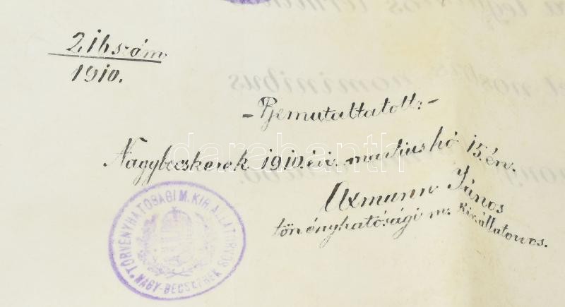 1908 Budapest, Magyar Királyi Állatorvosi Főiskola által kiállított di... https://www.darabanth.com/de/399-Fernauktion/399.0/Kunst-Dokumente-andere-Sammelgebiete/Dokument~500020/1908-Budapest-Magyar-Kiralyi-Allatorvosi-Foiskola-altal-kiallitott-diploma-fuggo-viaszpecs~II2440659