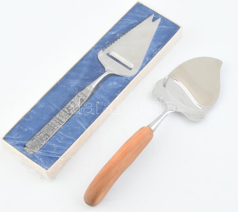 Beschreibung: 2 db sajtkés, acél, fa. h: 23cm
