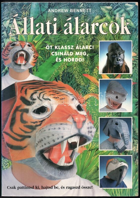 Beschreibung: 2 gyermeki kivágó, fa és papír: Andrew Bennett: Állati álarcok + Penguin