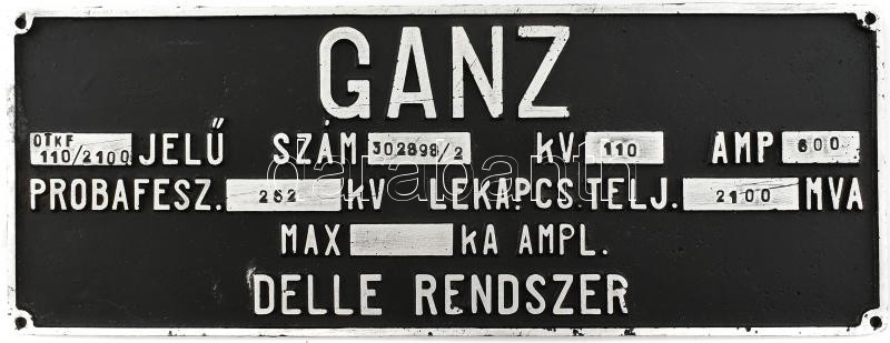 Ganz Delle rendszerű elektromos megszakító fémtáblája, 34,5x13 cm https://www.darabanth.com/de/399-Fernauktion/399.0/Kunst-Dokumente-andere-Sammelgebiete/Flohmarkt~500014/Ganz-Delle-rendszeru-elektromos-megszakito-femtablaja-34-5x13-cm~II2437290