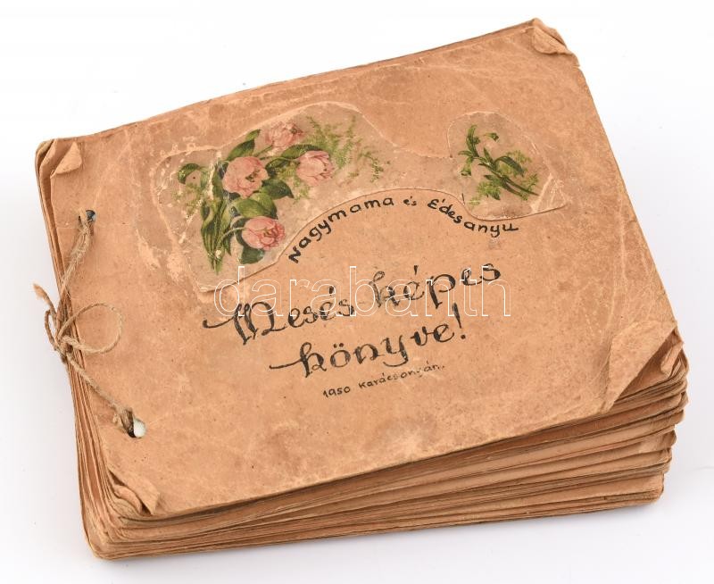 1950 Nagymama és Édesanyu mesés képeskönyve. 1950 karácsonyán. Mesés leporelló, beragasztott képekkel, kézzel írt versikékkel, szöveggel, kopott, foltos, 36 sztl. lev.