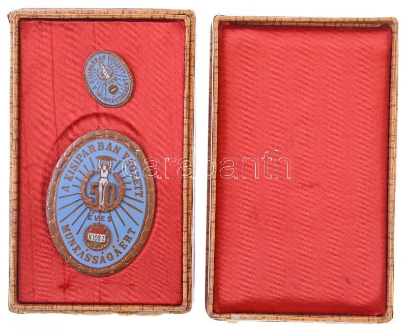 Beschreibung: DN "A Kisiparban végzett munkásságáért - 50 éves KIOSZ" zománcozott fém jelvény, miniatűrrel, dísztokban T:2