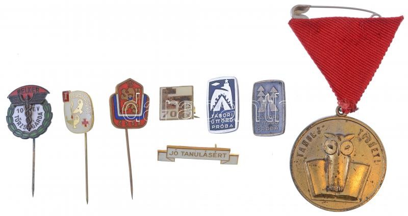 Beschreibung: Vegyes 8db-os szocialista jelvény tétel, közte 2db Úttörő jelvény valamint "Kitűnő tanuló" díjérem szalagon és "Jó tanulásért" zománcozott jelvény T:2