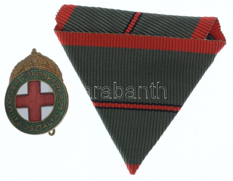 Beschreibung: ~1910-1920. "Magyar Vöröskereszt Ifjúsági Osztálya" zománcozott Br jelvény (24x19mm) + 1918. "Sebesültek Érme" eredeti mellszalagja (egy vörös sávval) T:2