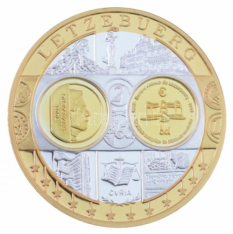 ~2002. "Emlékérem az euróövezet országainak közös valutájáról - Luxemb... https://www.darabanth.com/de/399-Fernauktion/399.0/Numismatik/Moderne-Beischlage-Fantasiemunzen~2000010/7E2002-Emlekerem-az-euroovezet-orszagainak-kozos-valutajarol-Luxemburg-aranyozott-ezC3~II2440570