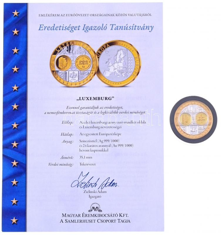 Beschreibung: ~2002. "Emlékérem az euróövezet országainak közös valutájáról - Luxemburg" aranyozott, ezüstözött Cu-Ni emlékérem tanúsítvánnyal (35mm) T:PP