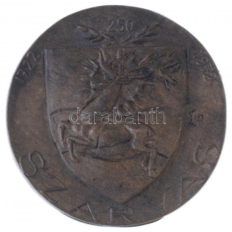 Beschreibung: Mladonyiczky Béla (1936-1995) 1972. "Szarvas 1722-1972" egyoldalas öntött Br plakett. Szign.: BM (101mm) T:1-